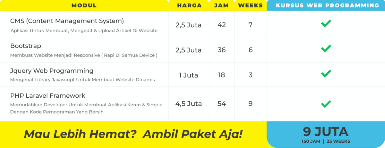 Setelah KURSUS WEB PROGRAMMING ini, kamu bisa membuat website keren yang profesional serta responsif untuk semua jenis dan ukuran layar, dan kamu juga bisa membuat halaman Content Management System.